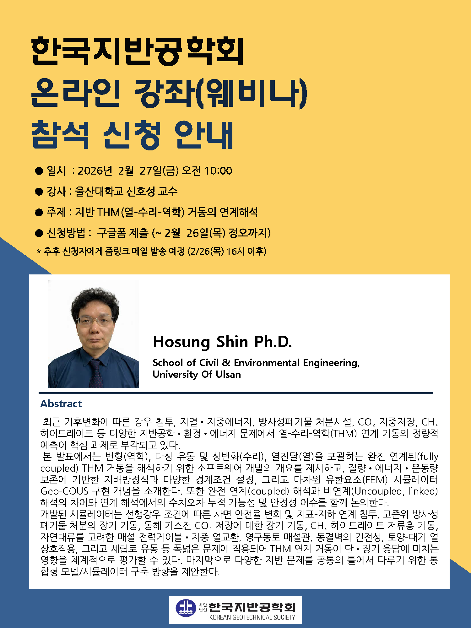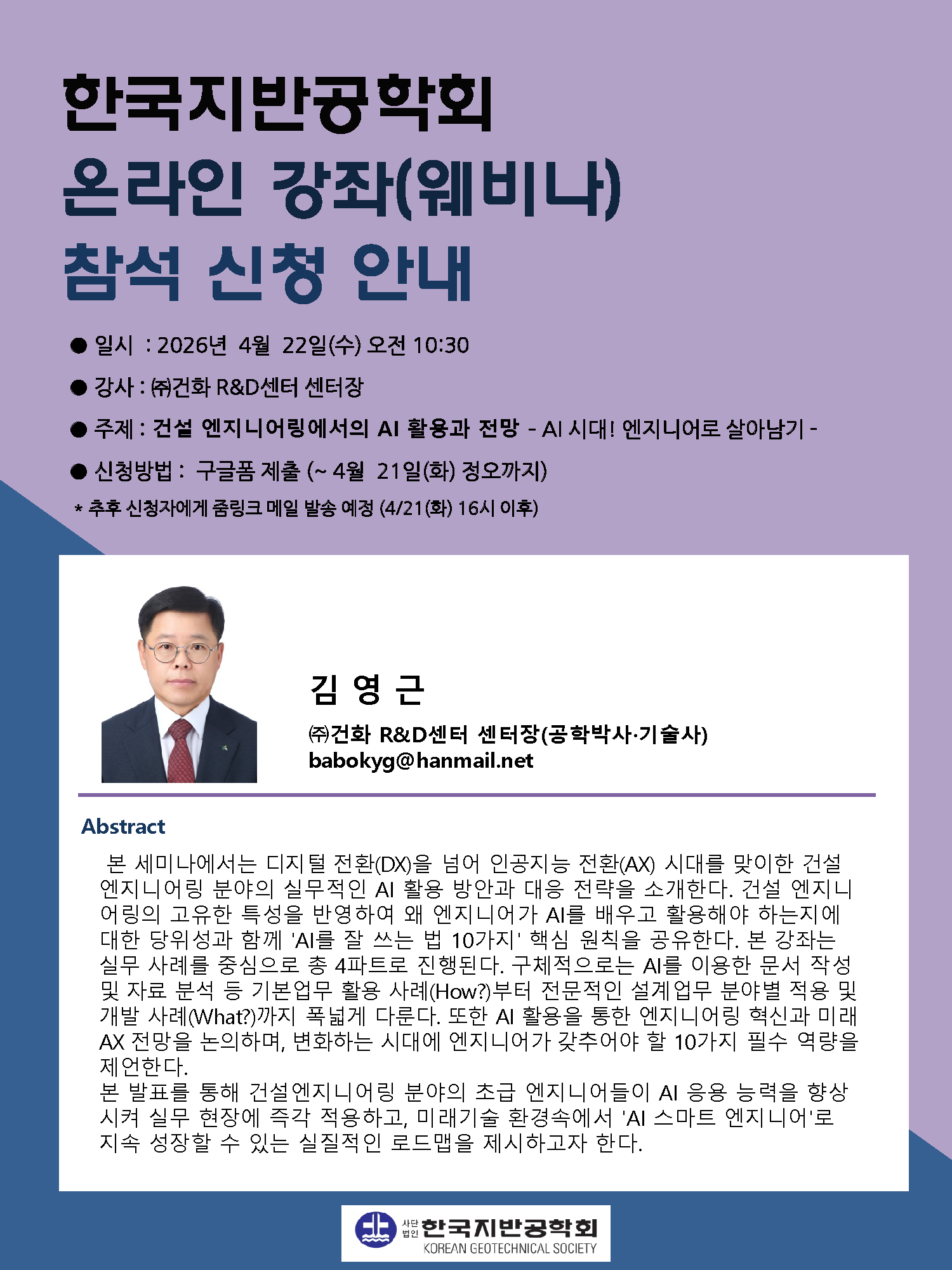 [한국지반공학회] 온라인 강좌(웨비나) 참석 신청 안내 (2/27(금))
