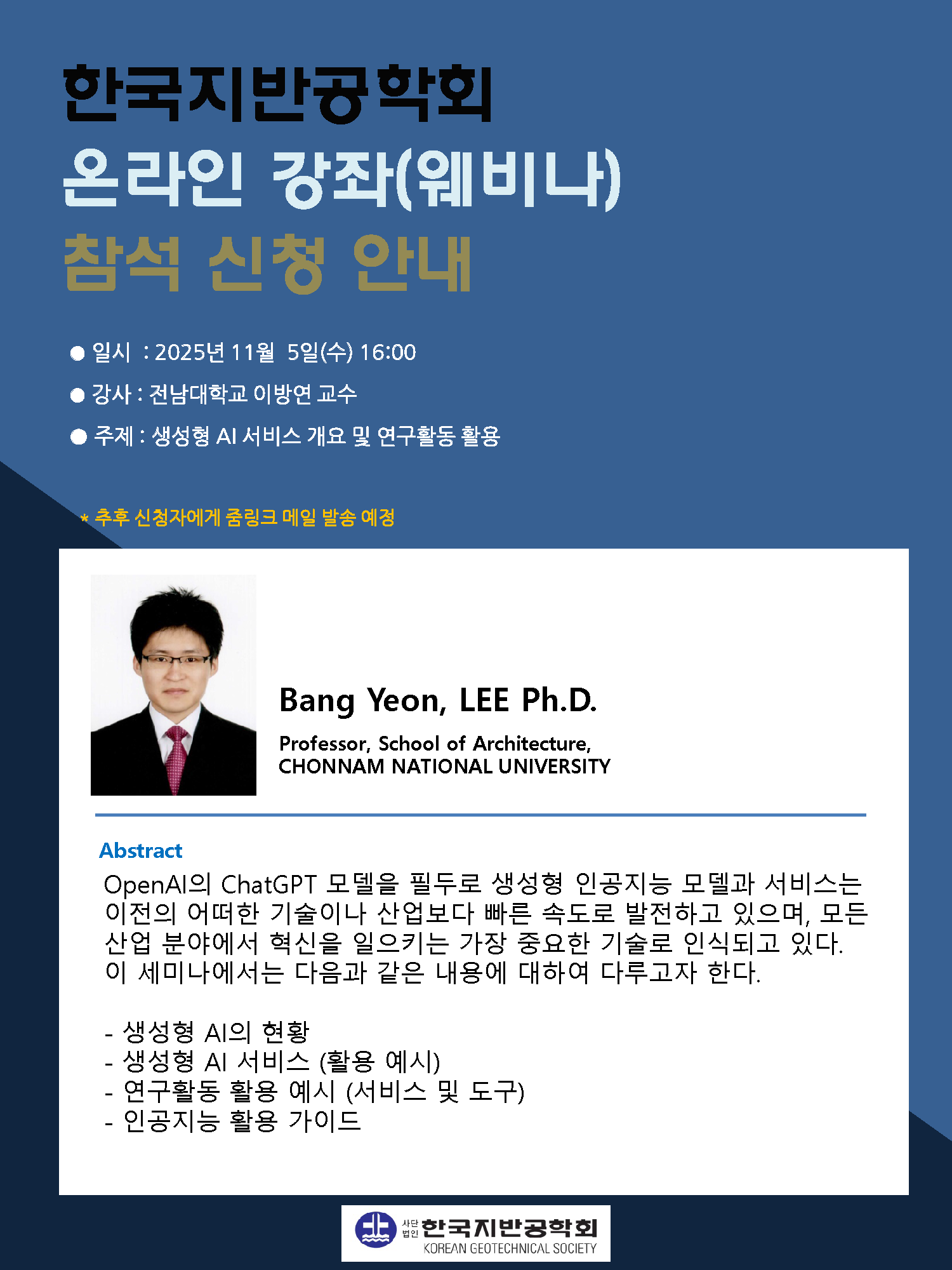 [한국지반공학회] 온라인 강좌(웨비나) 참석 신청 안내 (11/5(수))