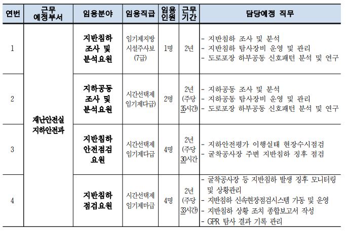 서울특별시 임기제공무원(지하안전분야)을 아래와 같이 공개 모집합니다.