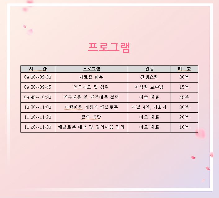 아래와 같이 공청회를 개최하오니 많은 관심 부탁드립니다.