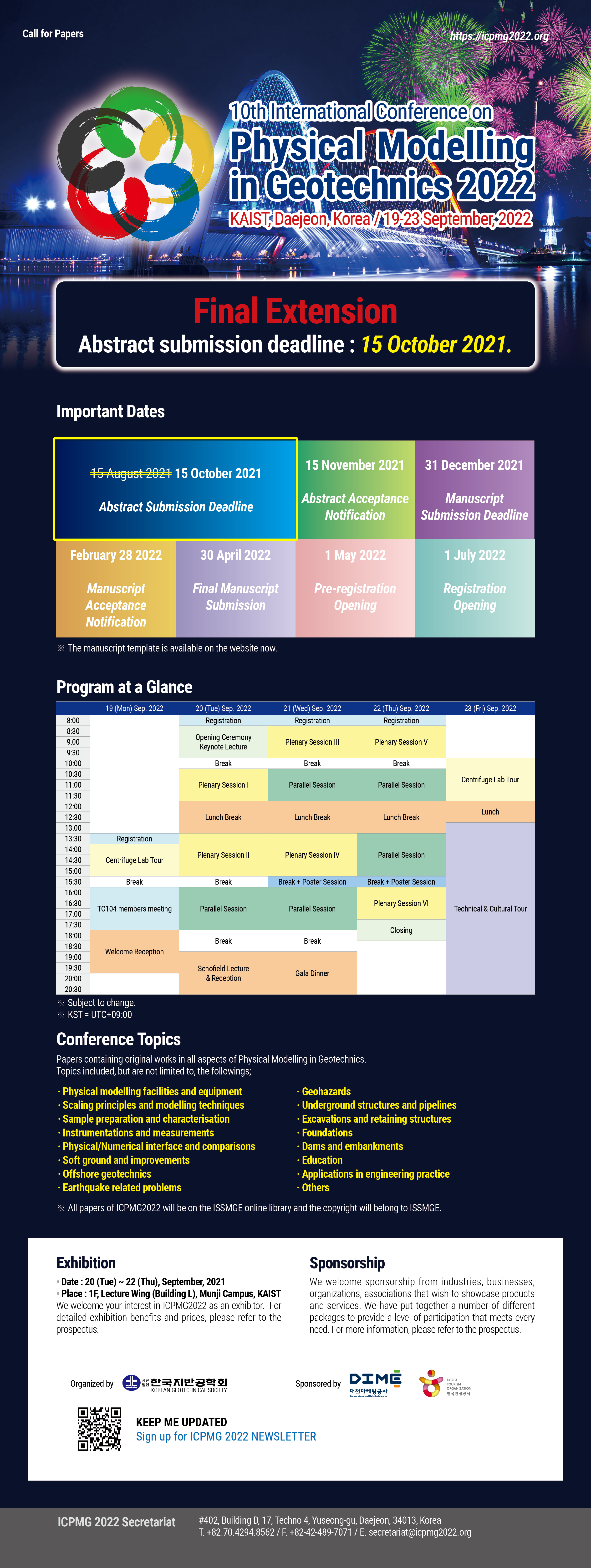 초록 제출 마감일이 최종 연장됨에 따라 아래의 안내에 따라 우수한 연구결과의 제출과 발표가 될 수 있도록 많은 관심과 참여를 부탁드리며, 제출된 초록은 온라인 시스템(https://icpmg2022.org/?page_id=122)에서 추후에 수정이 가능하므로 관심이 있으신 분께서는 10월 15일까지 초록 제출을 부탁드립니다.