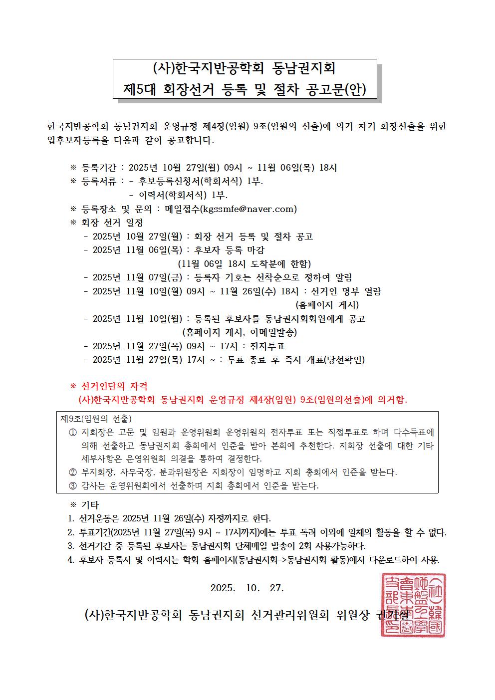 [동남권지회] 제5대 회장선거 등록 및 절차 공고