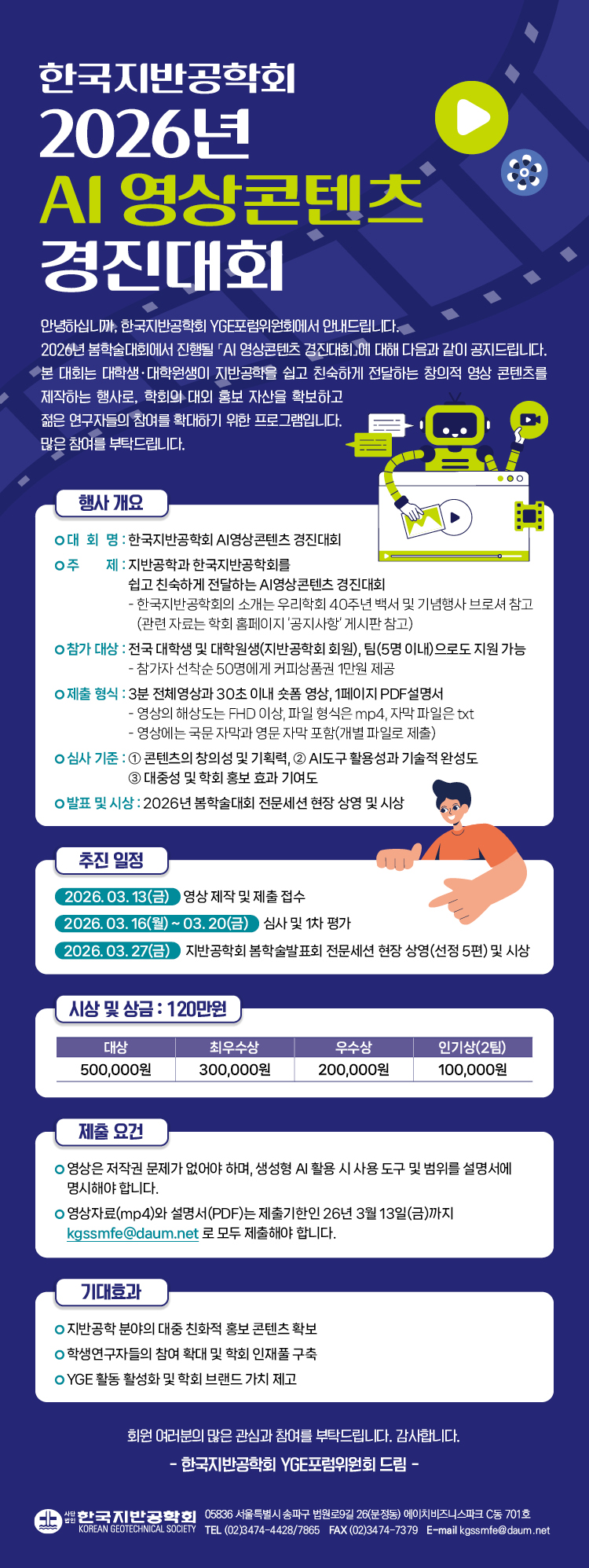 [한국지반공학회] 2026년 AI 영상콘텐츠 경진대회 (~3/13까지 제출)(연장)