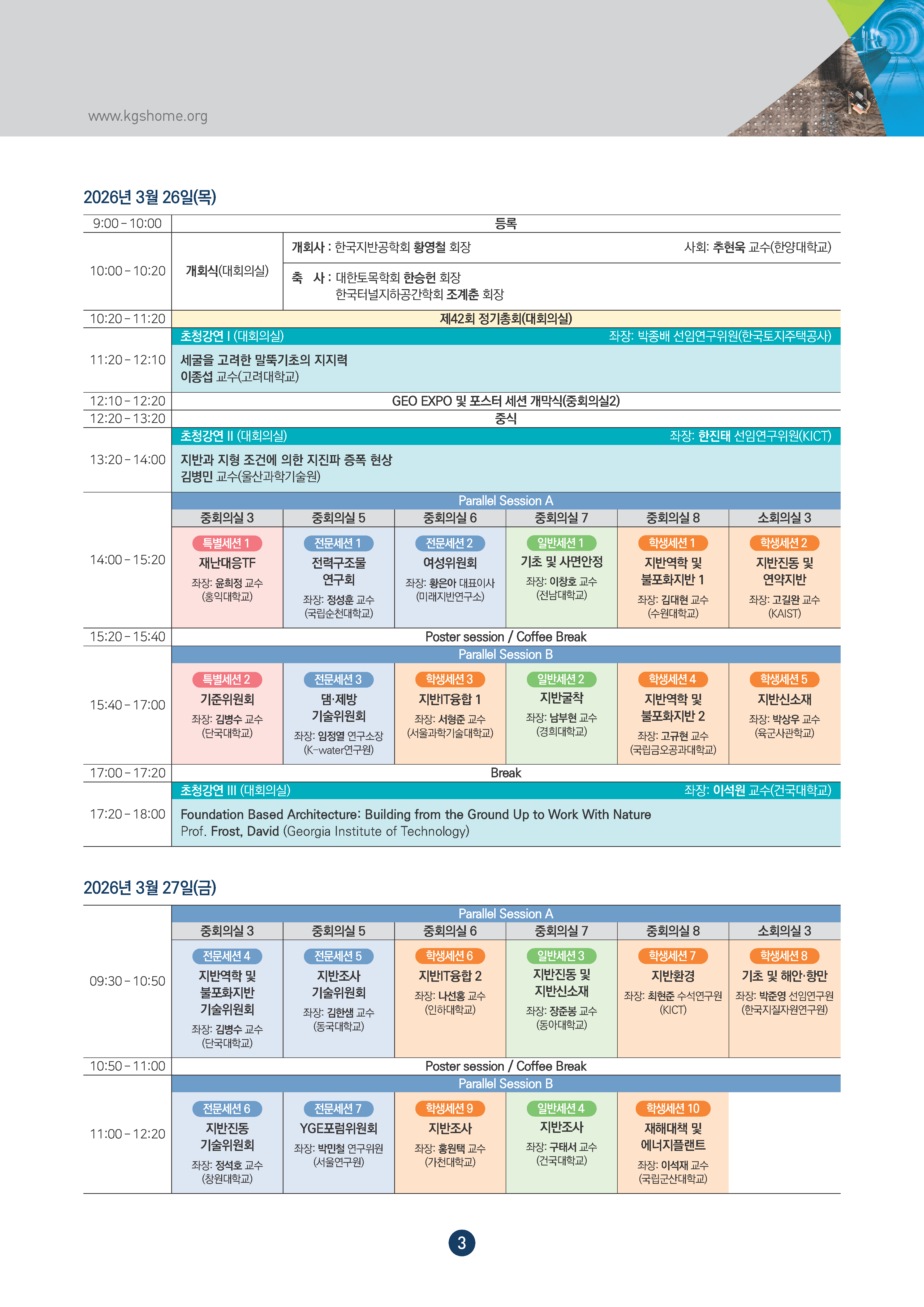 2026년 한국지반공학회 봄학술발표회를 아래와 같이 개최하오니,
