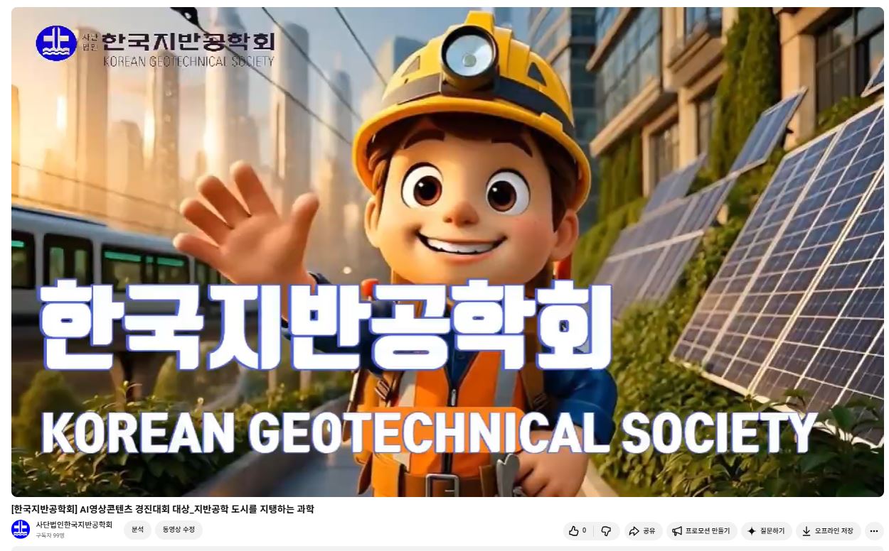 한국지반공학회 YGE포럼위원회에서 지반공학을 쉽고 친숙하게 전달하는 창의적 영상 콘텐츠를 제작하는 AI영상콘텐츠 경진대회를 진행하였습니다.