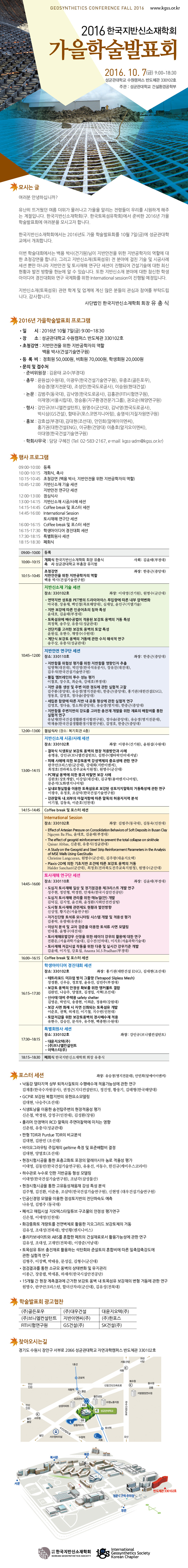 한국지반신소재학회에서 2016년 가을학술발표회를 아래와 같이 개최하오니, 회원여러분들의 많은 참여 바랍니다.