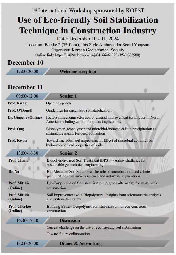 1st International Workshop sponsored by KOFST Use of Eco-friendly Soil Stabilization Technique in Construction Industry