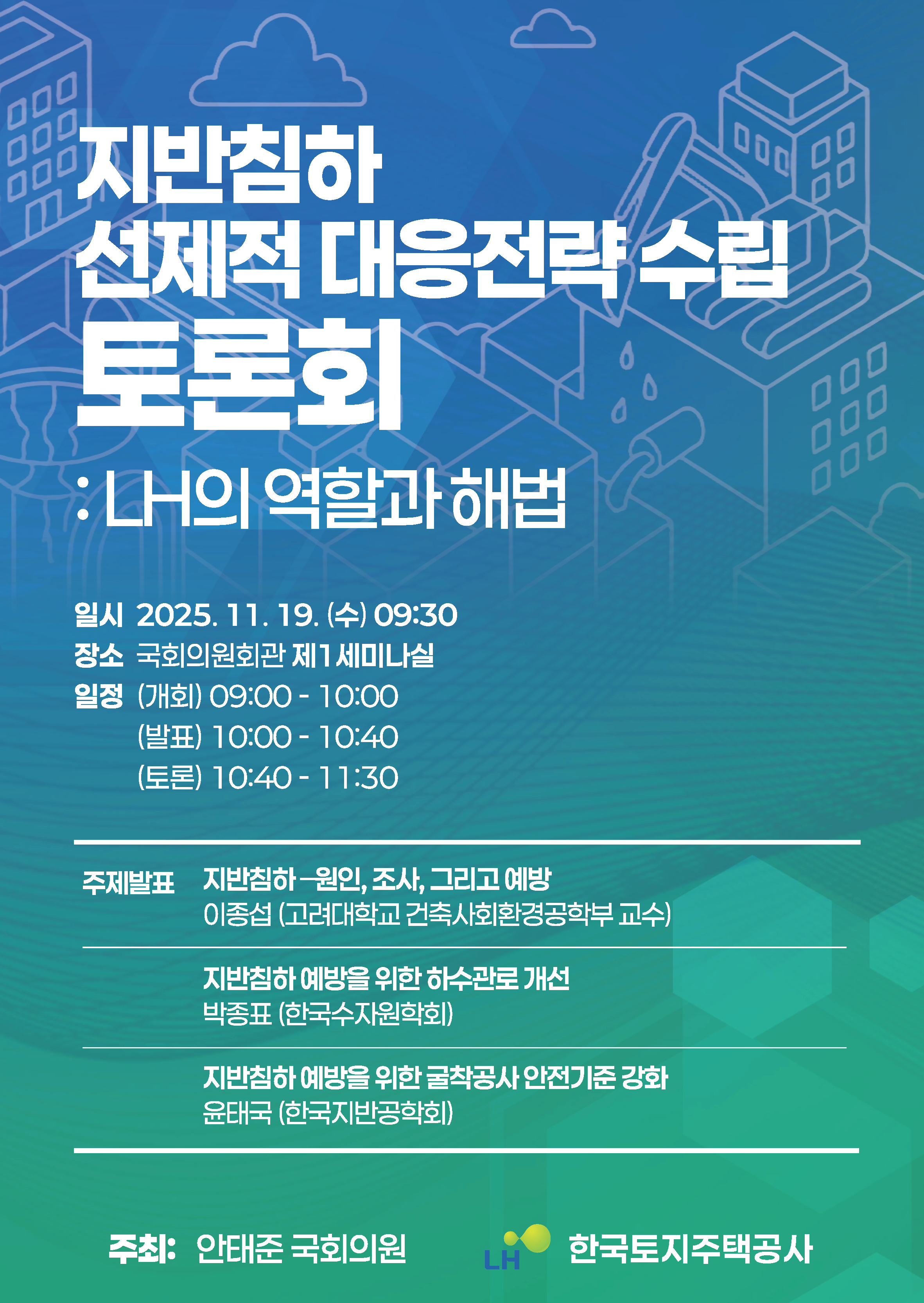 [한국토지주택공사] 지반침하 선제적 대응전략 수립 토론회 (11/19(수))