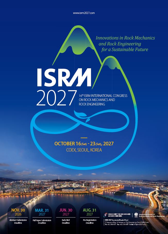 국제암반공학회(International Society for Rock Mechanics and Rock Engineering, ISRM)와 한국암반공학회는 제16차 세계암반공학대회(이하, ISRM 2027)를 2027년 10월 16일부터 23일까지 서울 코엑스에서 개최합니다.