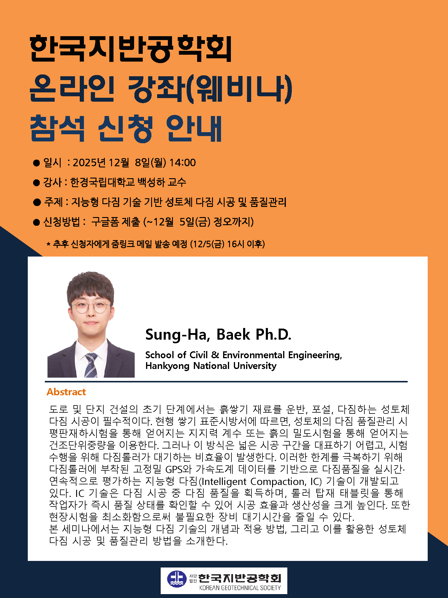 [한국지반공학회] 온라인 강좌(웨비나) 참석 신청 안내 (12/8(월))
