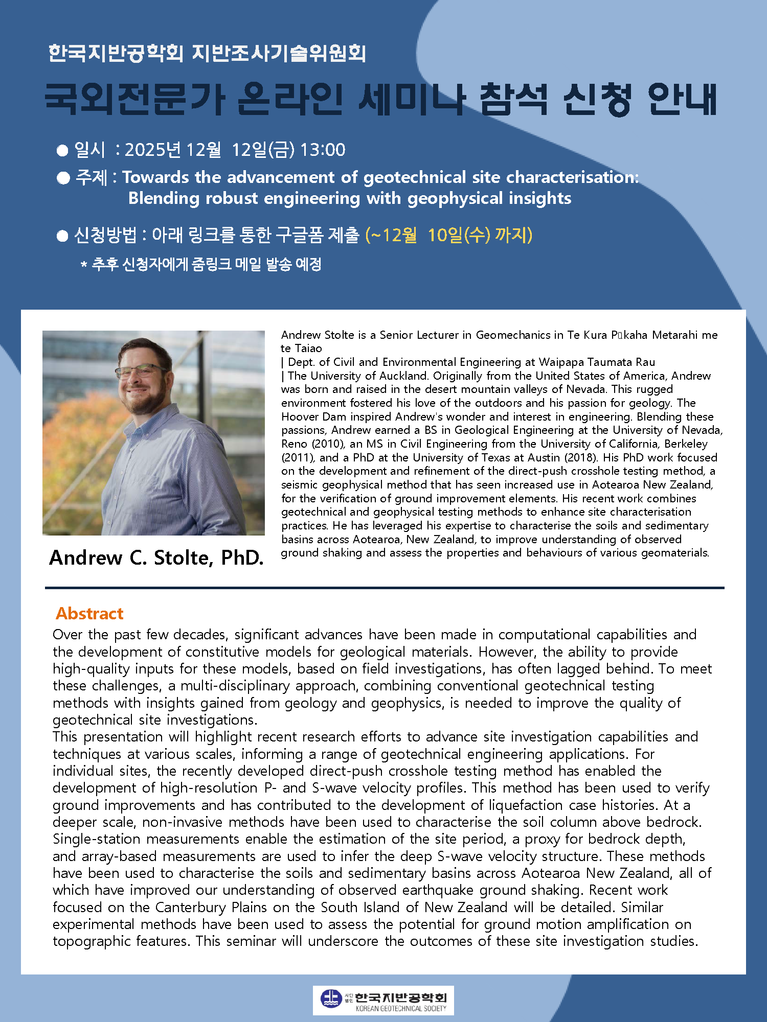 [지반조사기술위원회] 국외전문가 온라인 세미나 참석 신청 안내(12/12(금))